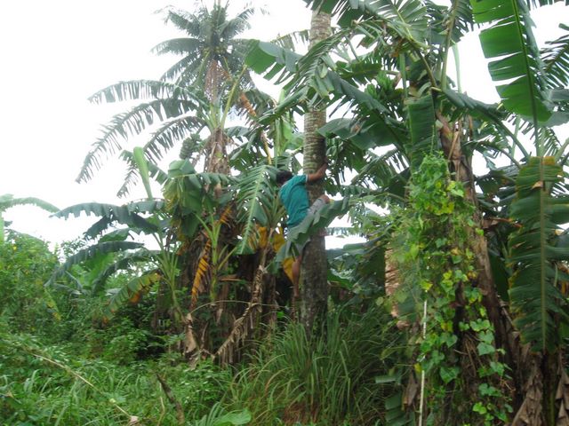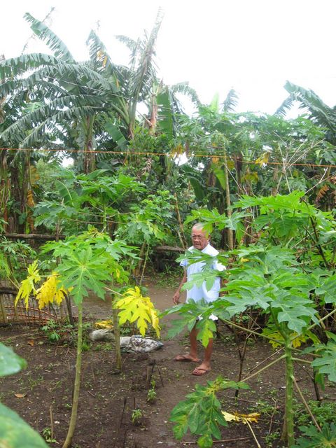 Jane's lolo is working in the garden and in the banana trees. He is 84 years old.