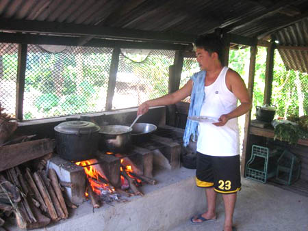 Noel is cooking for all and Grace is working in the kitchen