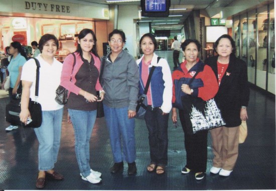 Grace with her group waiting in the airport